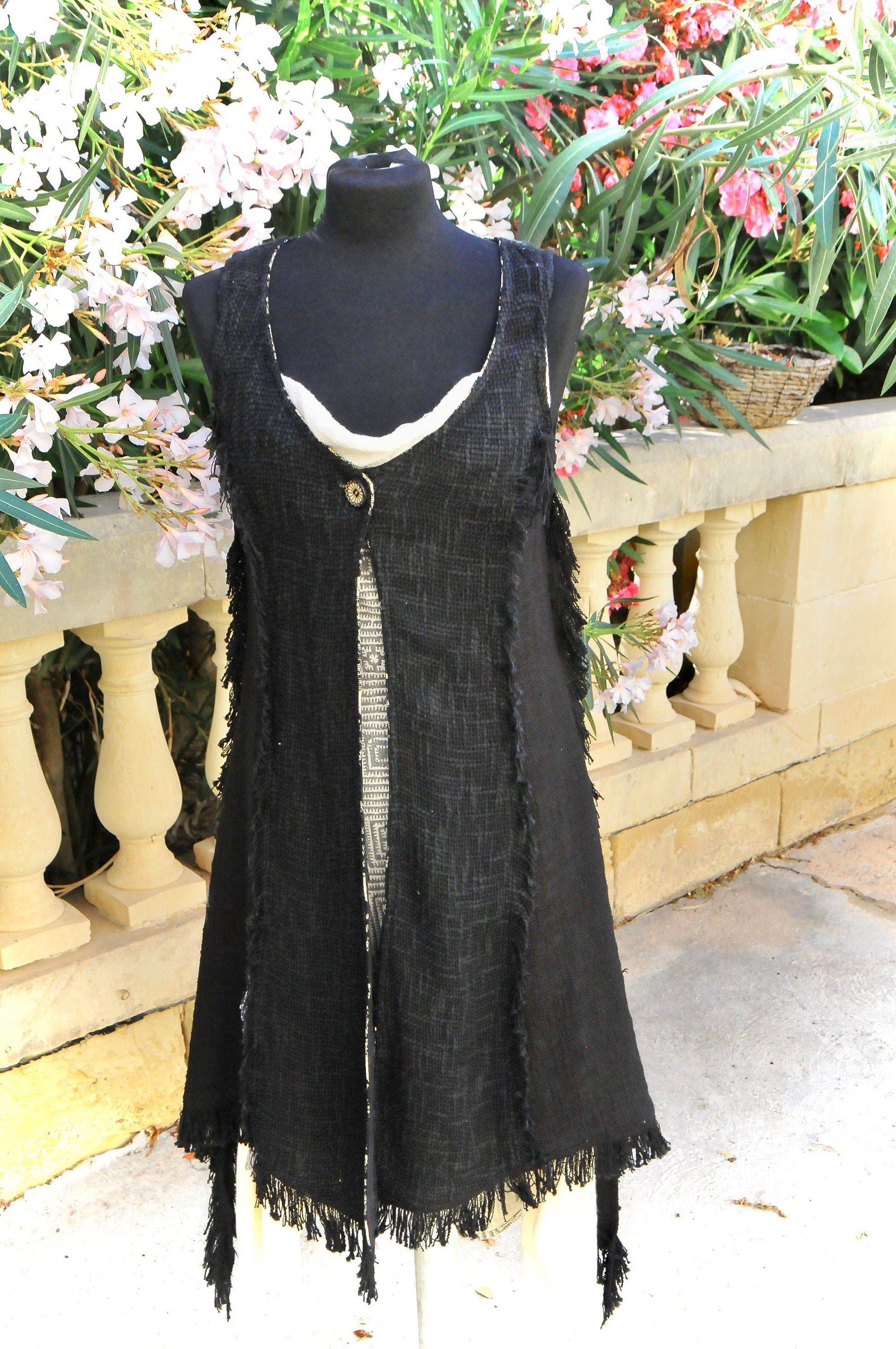 LLAGATHA long open Boho Vest makes an elegant and stylishly comfortable addition to any wardrobe. Soft, thick textured cotton linen drapes in a flattering cut at the front falling to an eye catching, staggered hem line.