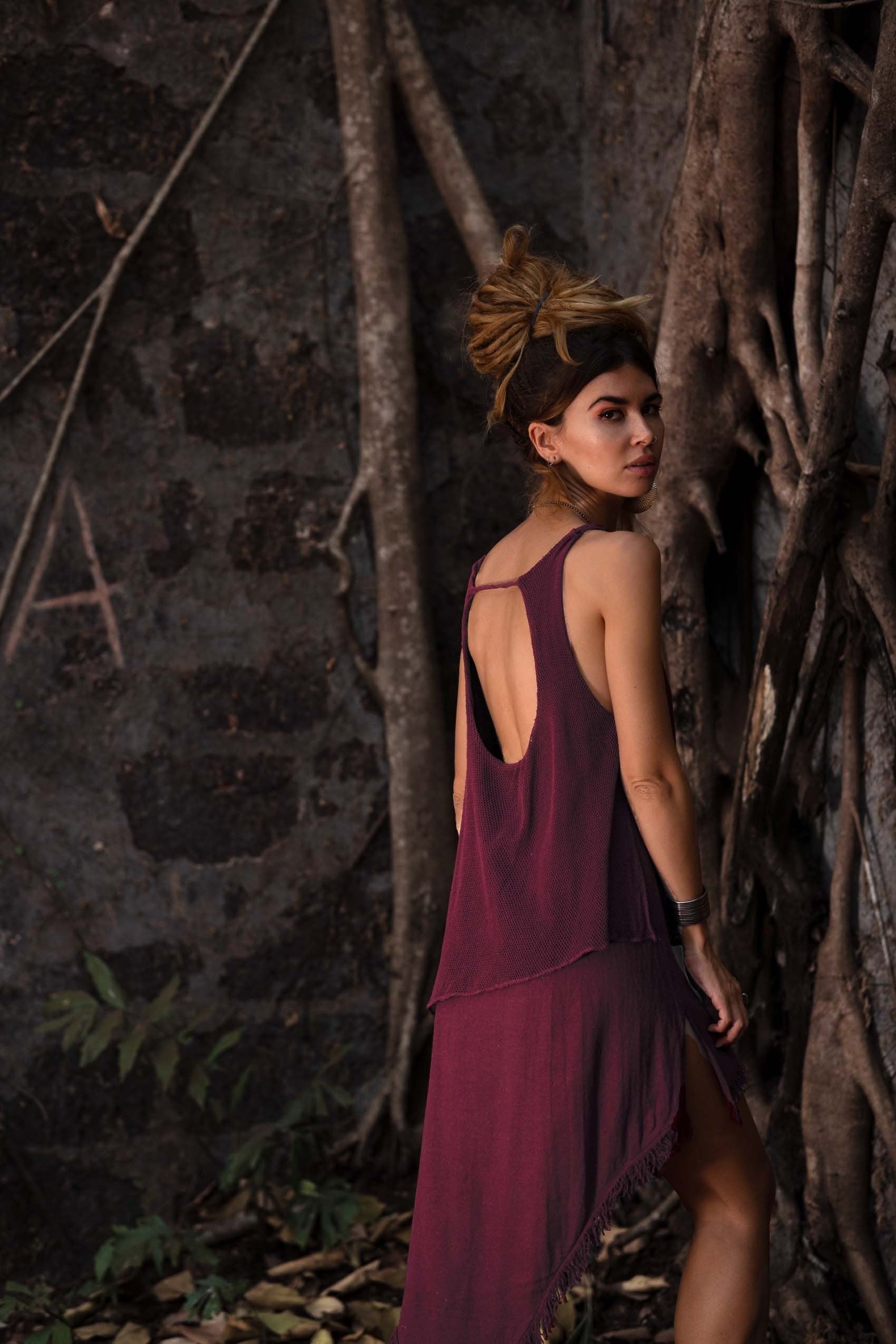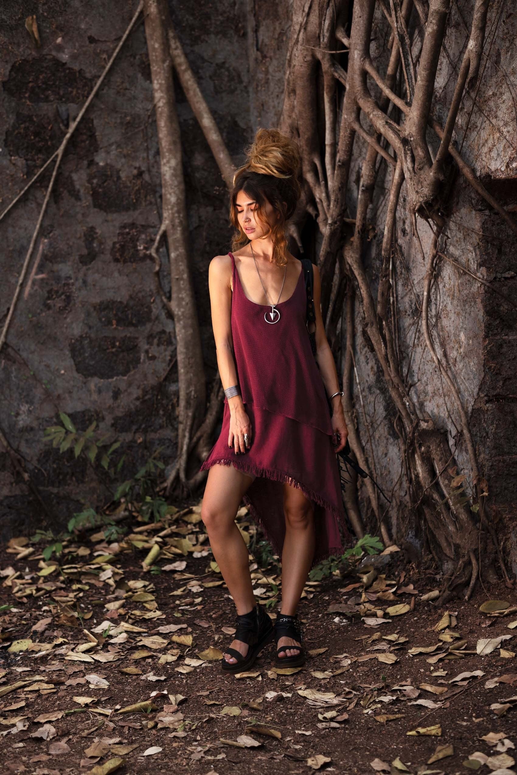 Effortlessly stylish and sexy, the IDUNN two layer asymmetrical dress is loose fitting with a cut that flatters most body shapes. The underside of this model is made of 100% naturally died Raw cotton with top layer of net.
