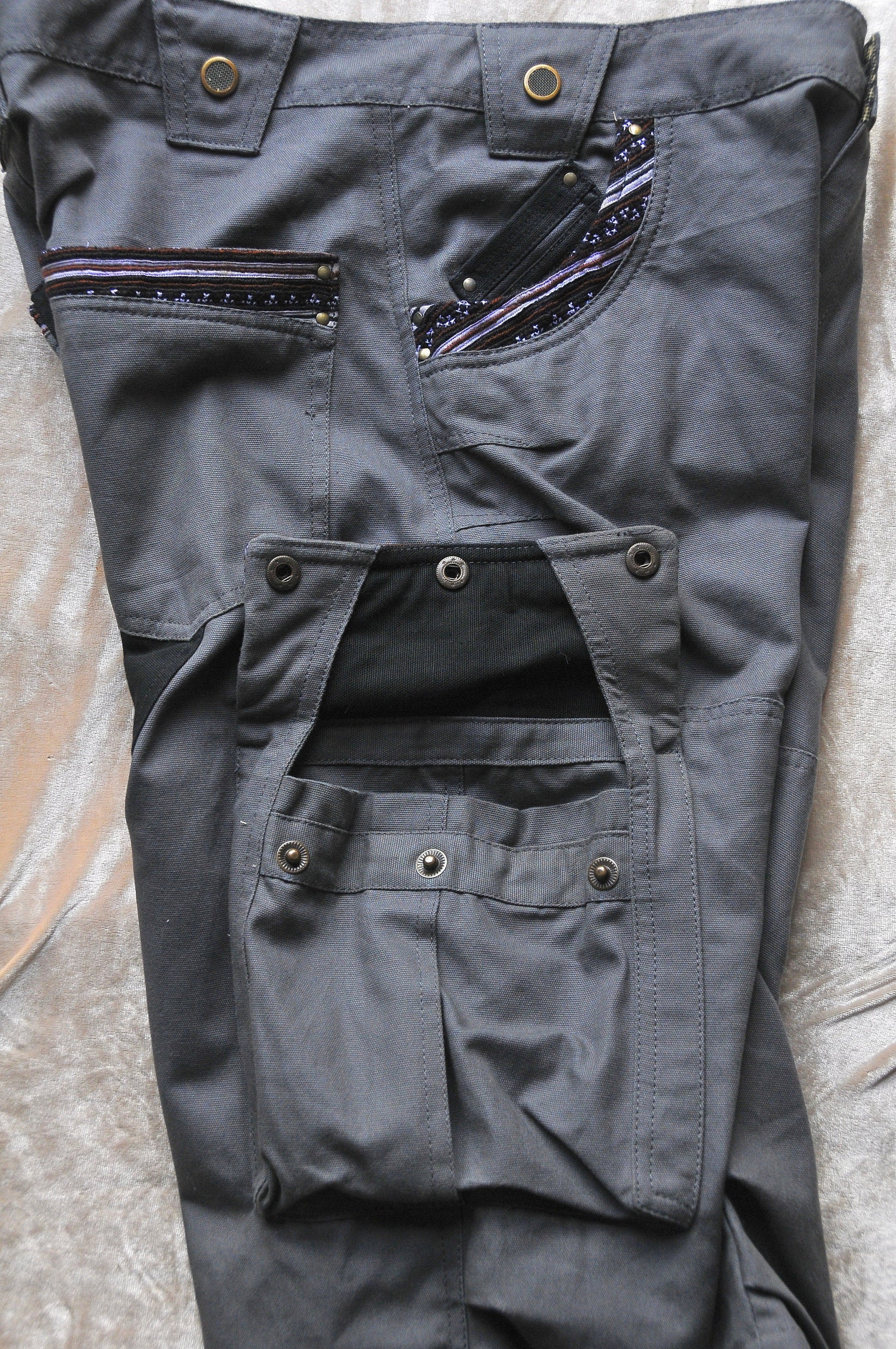 Built to Last Crafted from durable cotton canvas with double-layered contrast patches, these pants are made for life's adventures - long motorcycle journeys, festival days and nights, bushwalking, or everyday wear. Plus, the design is incredibly flattering for the male silhouette!